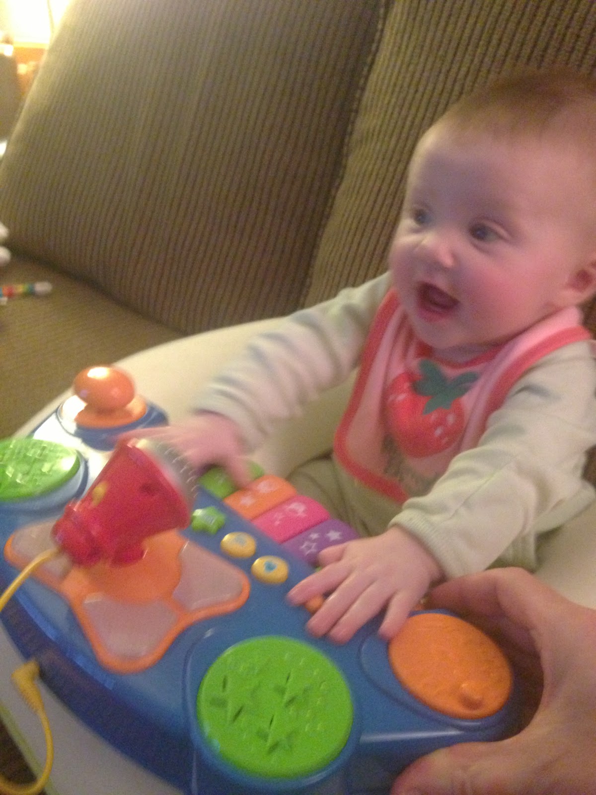 For Lucy's first Superbowl we went to a friend's party to watch the big game. While I was somewhat afraid it would be a real-life version of the Buffalo Wild Wings commercial, the LW actually behaved very well and proved that even macho football fans cannot resist having their hearts melted by her signature smile. Here she is celebrating after the 49ers scored a last minute touchdown to win the game! WoooooHoooooo!!!!